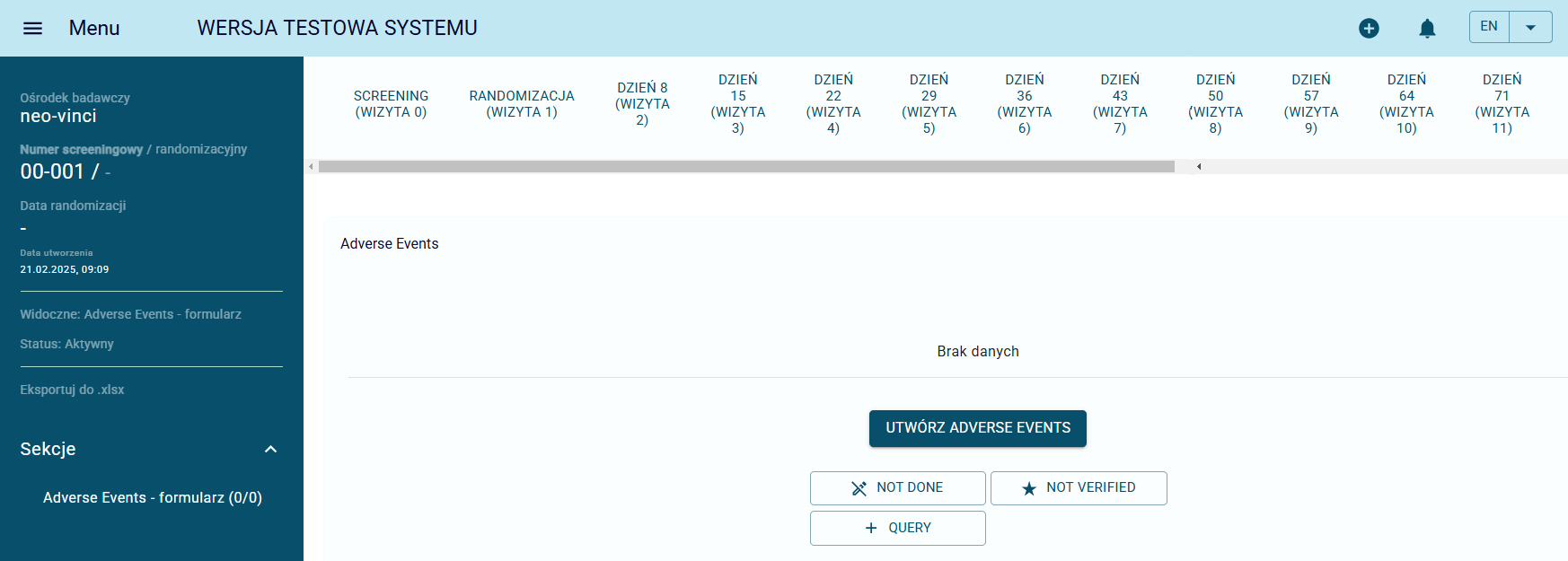 Automated notifications – the system generates alerts for the Investigator, Sponsor, and monitoring team in the event of Serious Adverse Events (SAEs).